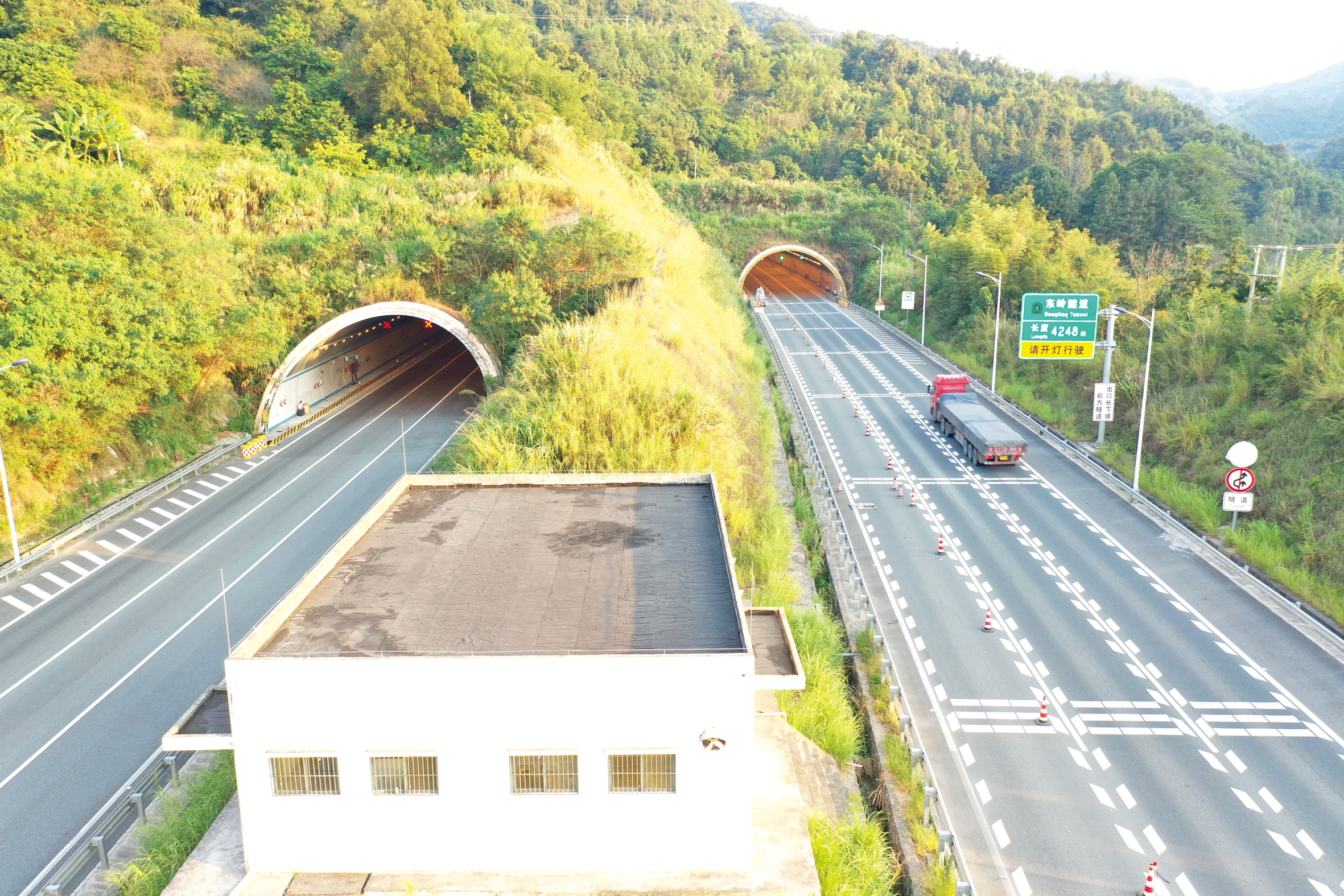 2015年12月建成通車,為汕頭至湛江高速公路揭西大溪至博羅石壩段的控制性工程。左線隧道長4248m,右線隧道長4244m,雙向六車道,設(shè)計時速120 km/h。隧道洞口美觀大方,與周邊環(huán)境融為一體。 結(jié)合項目地質(zhì)條件復(fù)雜、結(jié)構(gòu)斷面大、工期緊等特點,設(shè)計中積極利用新技術(shù)、新工藝,成功應(yīng)用復(fù)雜地質(zhì)條件隧道開挖綜合技術(shù),確保工程建設(shè)與運營安全。
