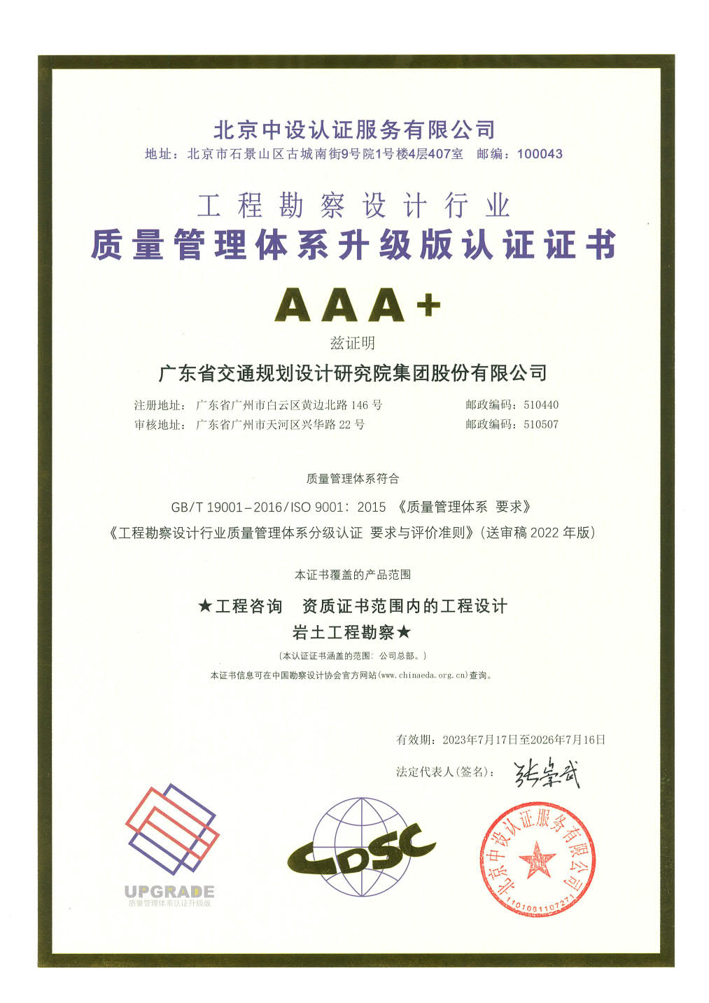 質(zhì)量管理體系升級版認證證書