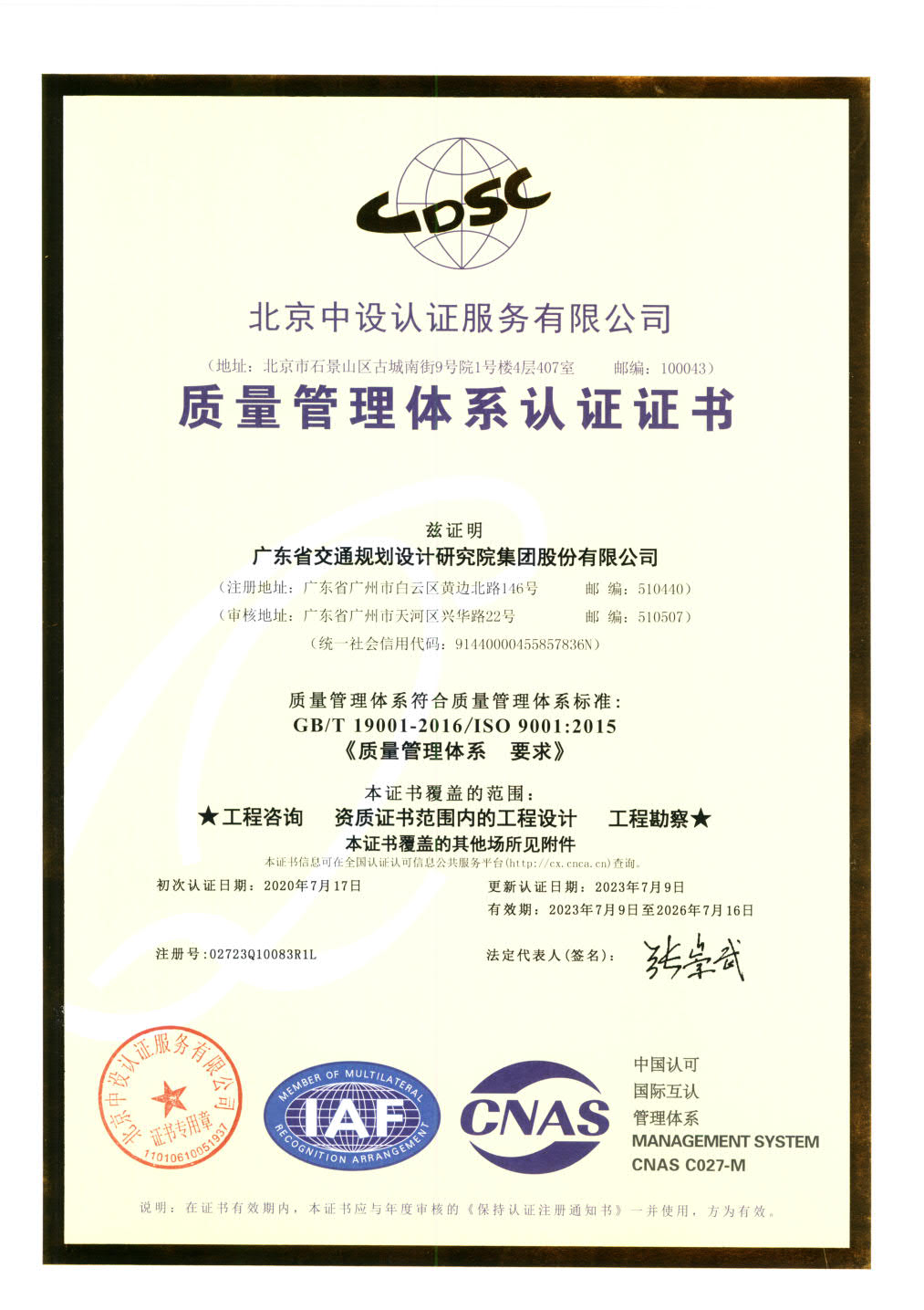 質(zhì)量管理體系認證證書
