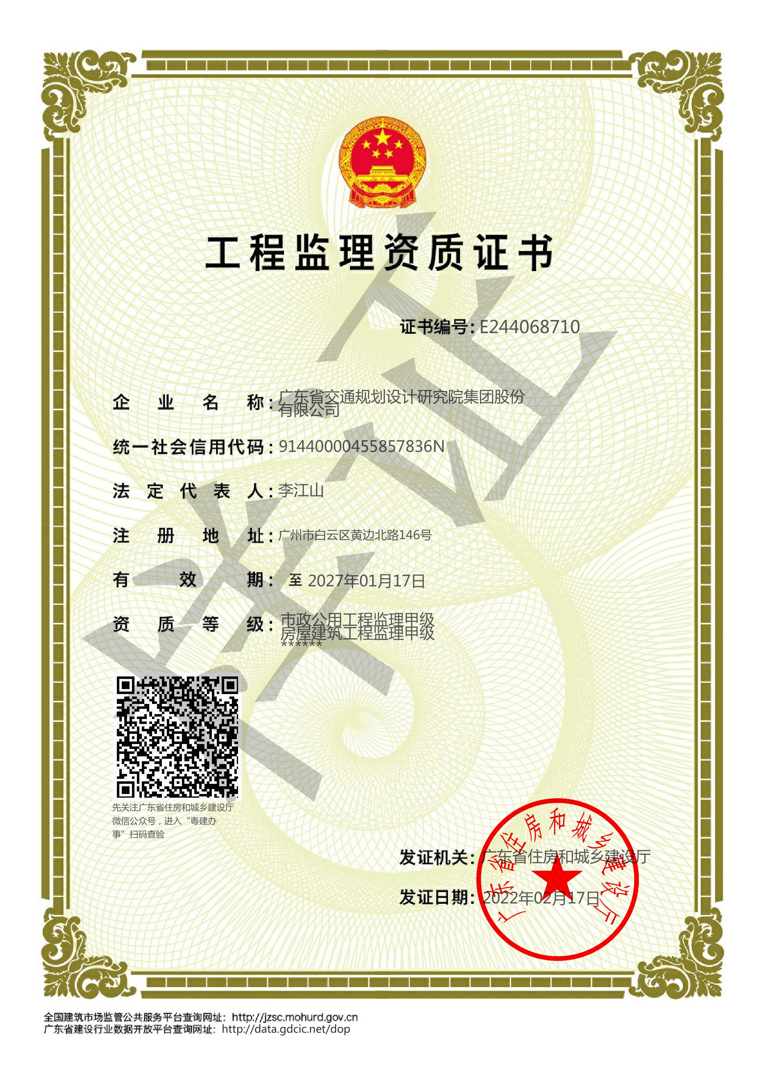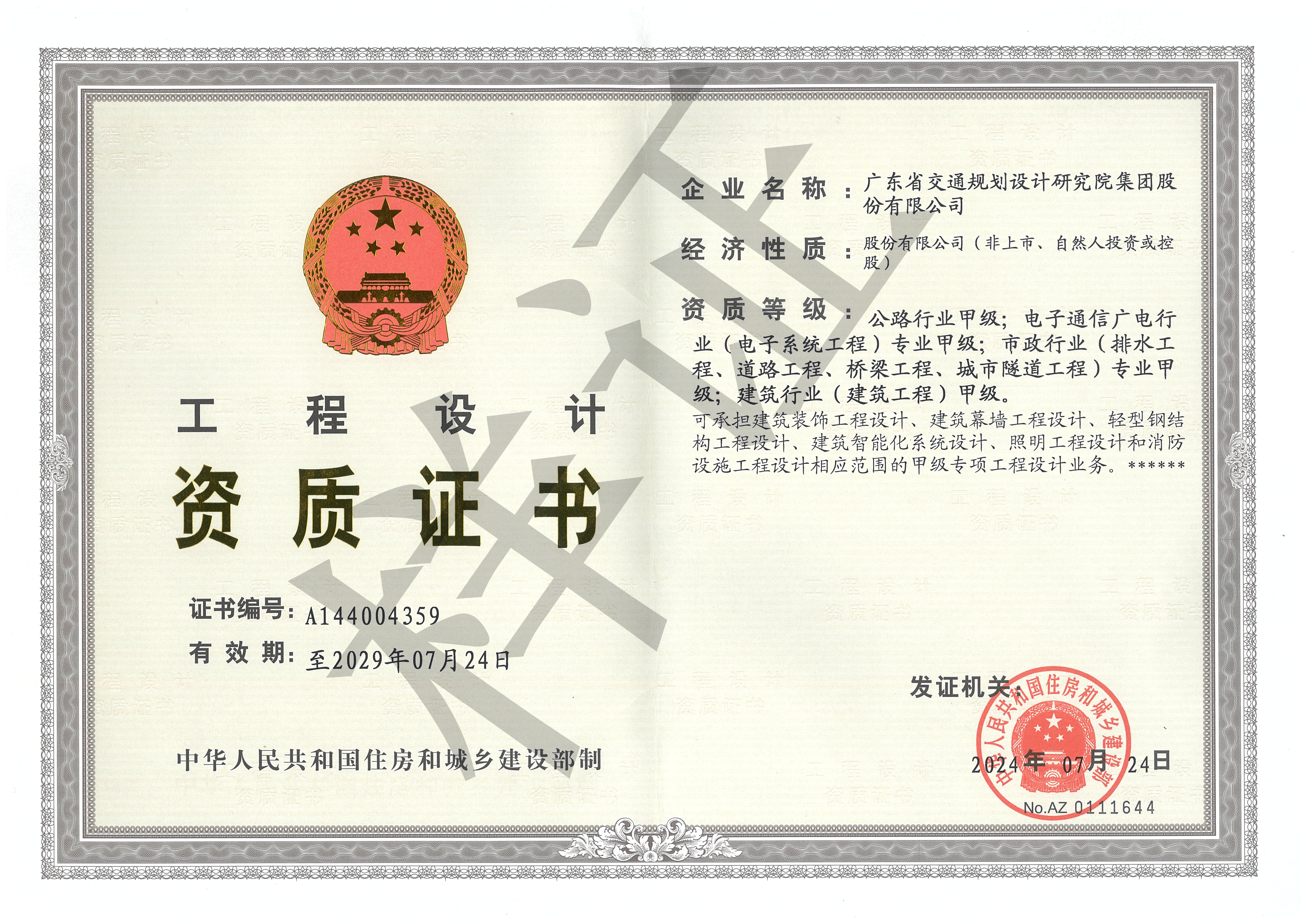 工程設(shè)計(jì)-公路行業(yè)甲級(jí);電子通信廣電行業(yè)(電子系統(tǒng)工程)專(zhuān)業(yè)甲級(jí);市政行業(yè)(排水工程、道路工程、橋梁工程、城市隧道工程)專(zhuān)業(yè)甲級(jí);建筑行業(yè)(建筑工程)甲級(jí)