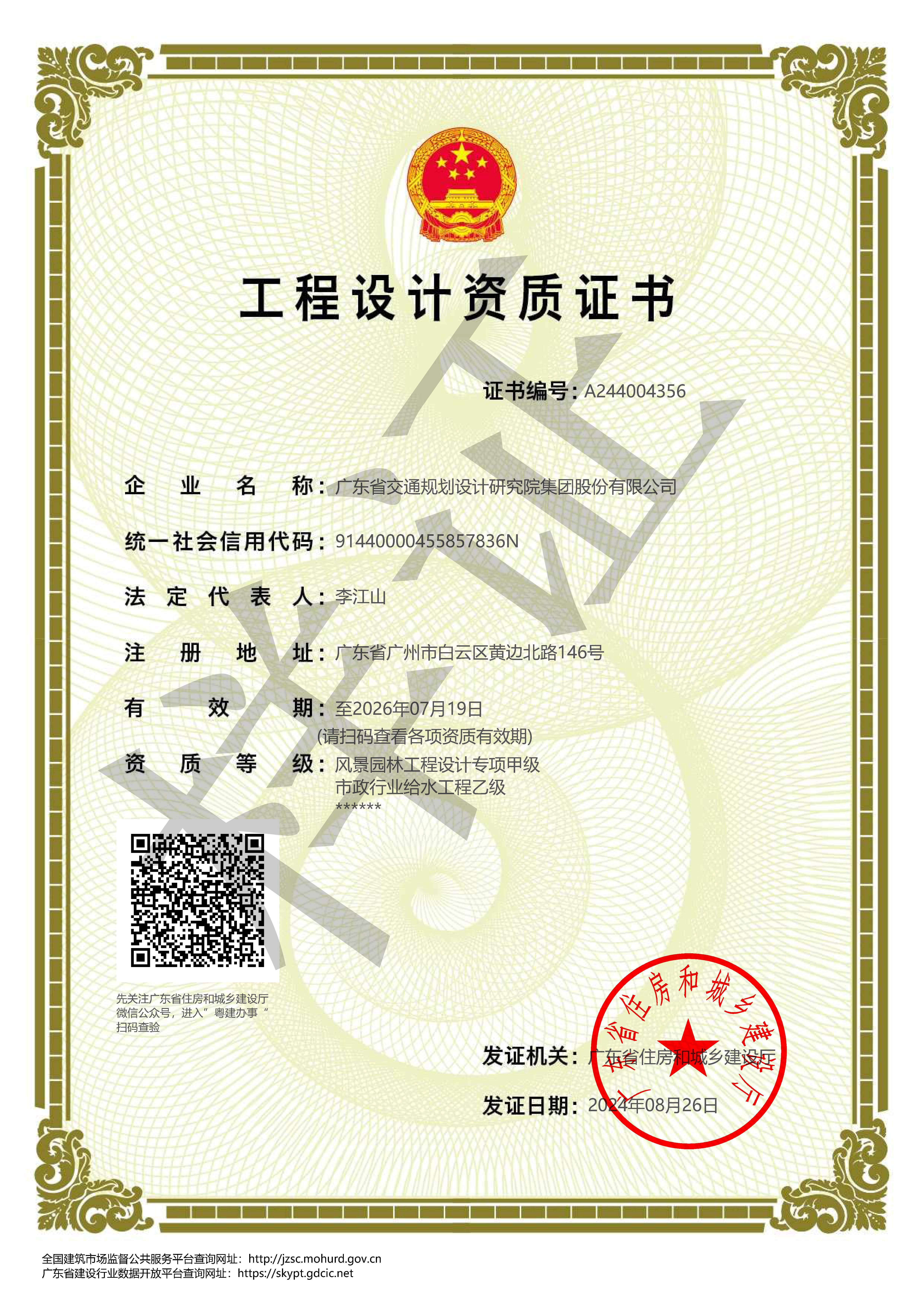 工程設(shè)計(jì)-風(fēng)景園林工程設(shè)計(jì)專(zhuān)項(xiàng)甲級(jí);市政行業(yè)給水工程乙級(jí)