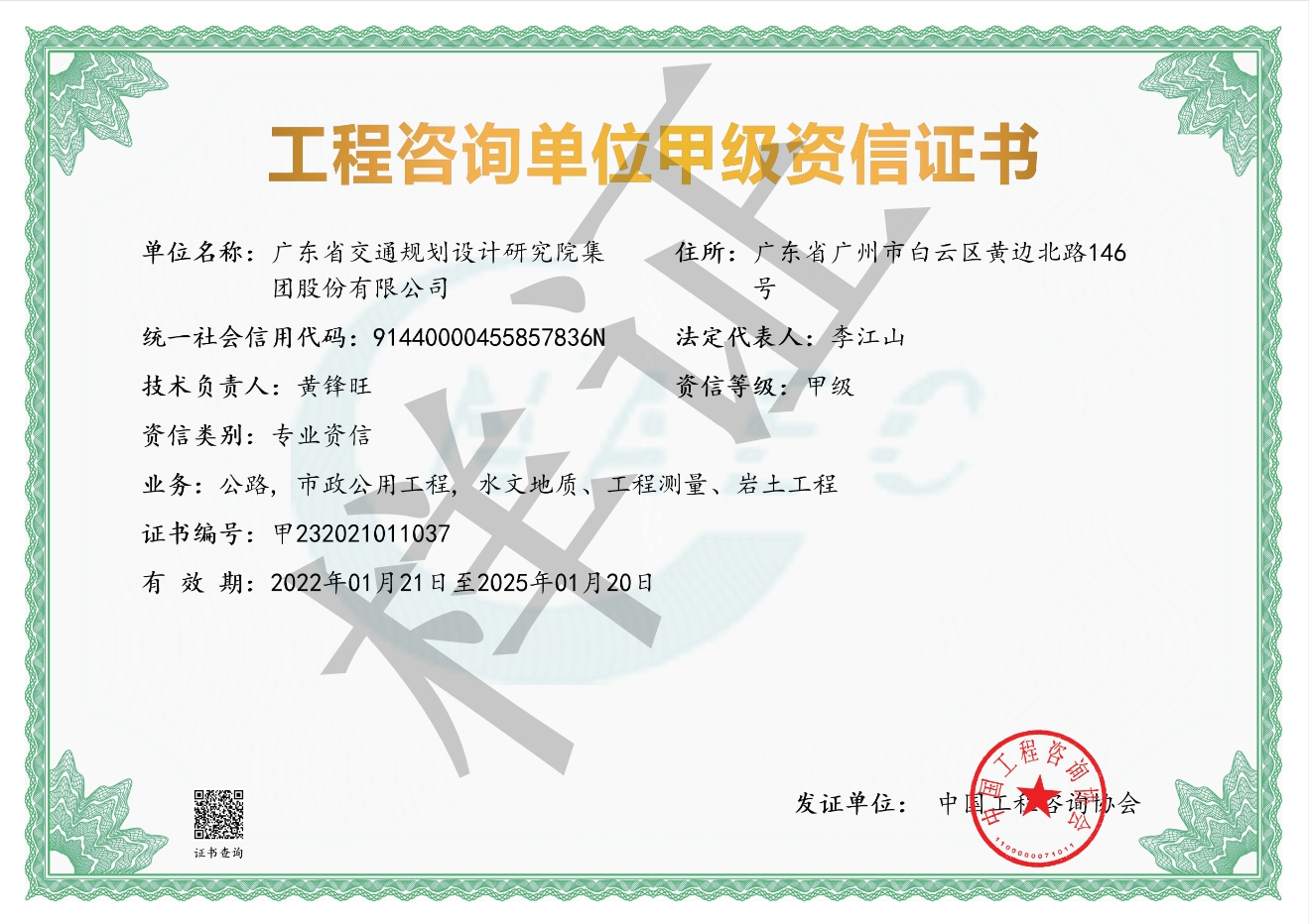工程咨詢(xún)單位甲級(jí)資信-公路;市政公用工程;水文地質(zhì)、工程測(cè)量、巖土工程