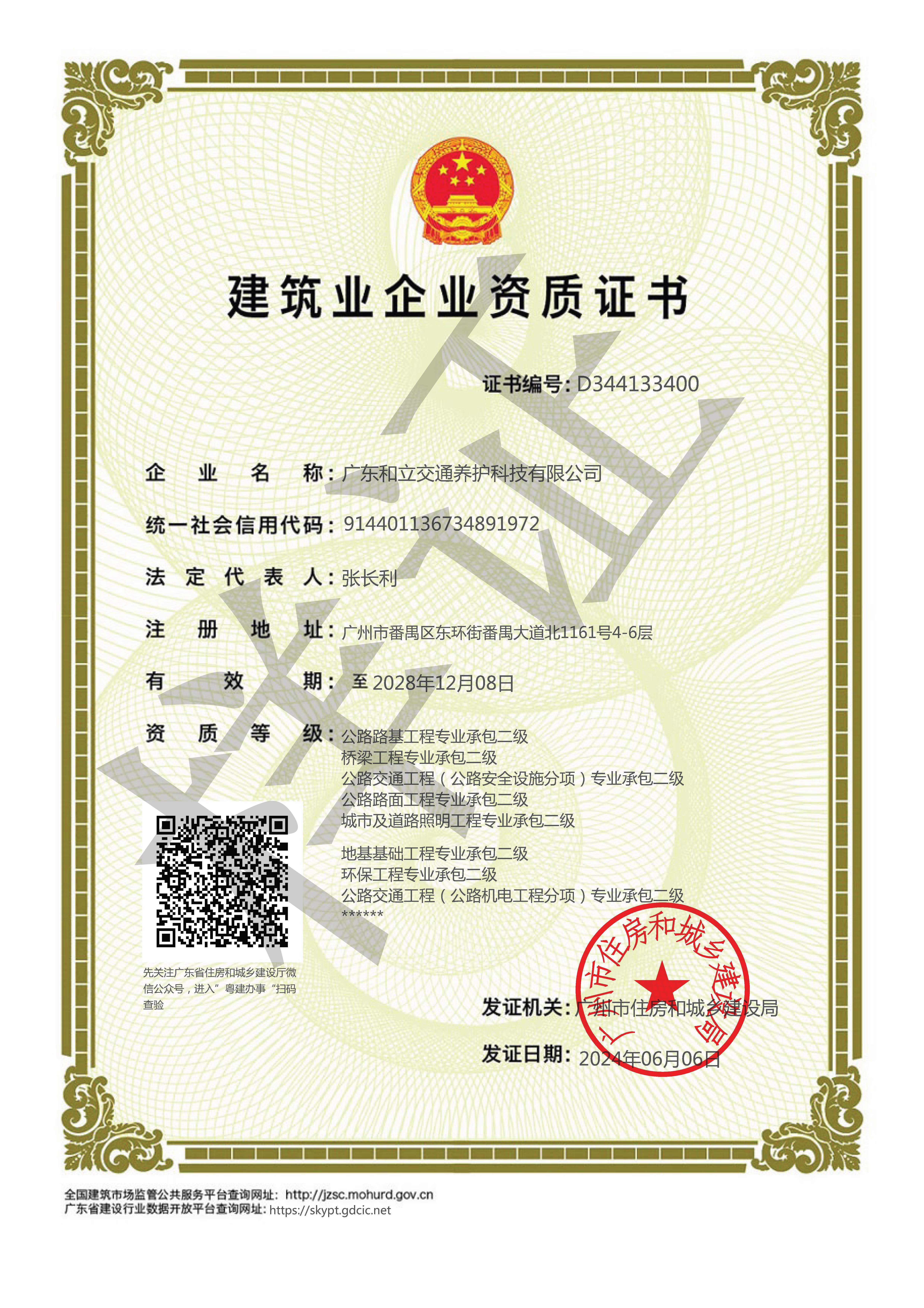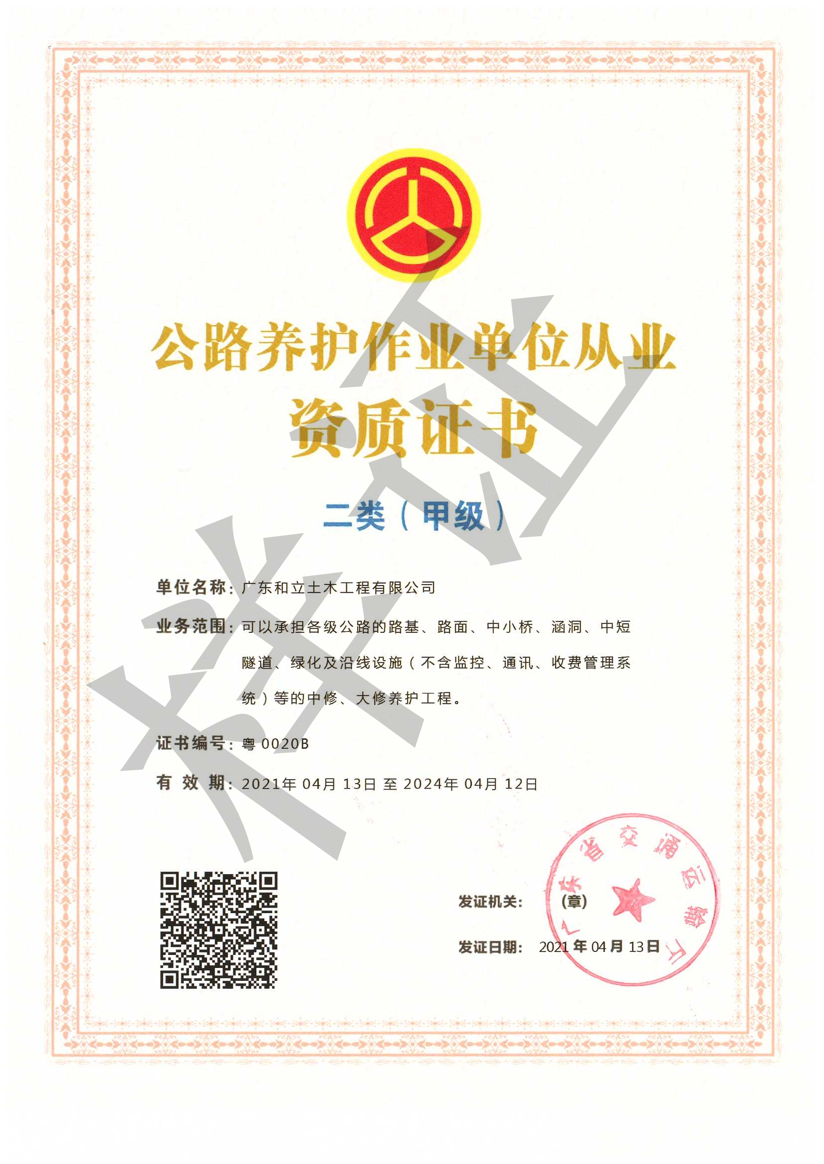 (和立)公路養(yǎng)護(hù)作業(yè)單位從業(yè)資質(zhì)二類(lèi)(甲級(jí))