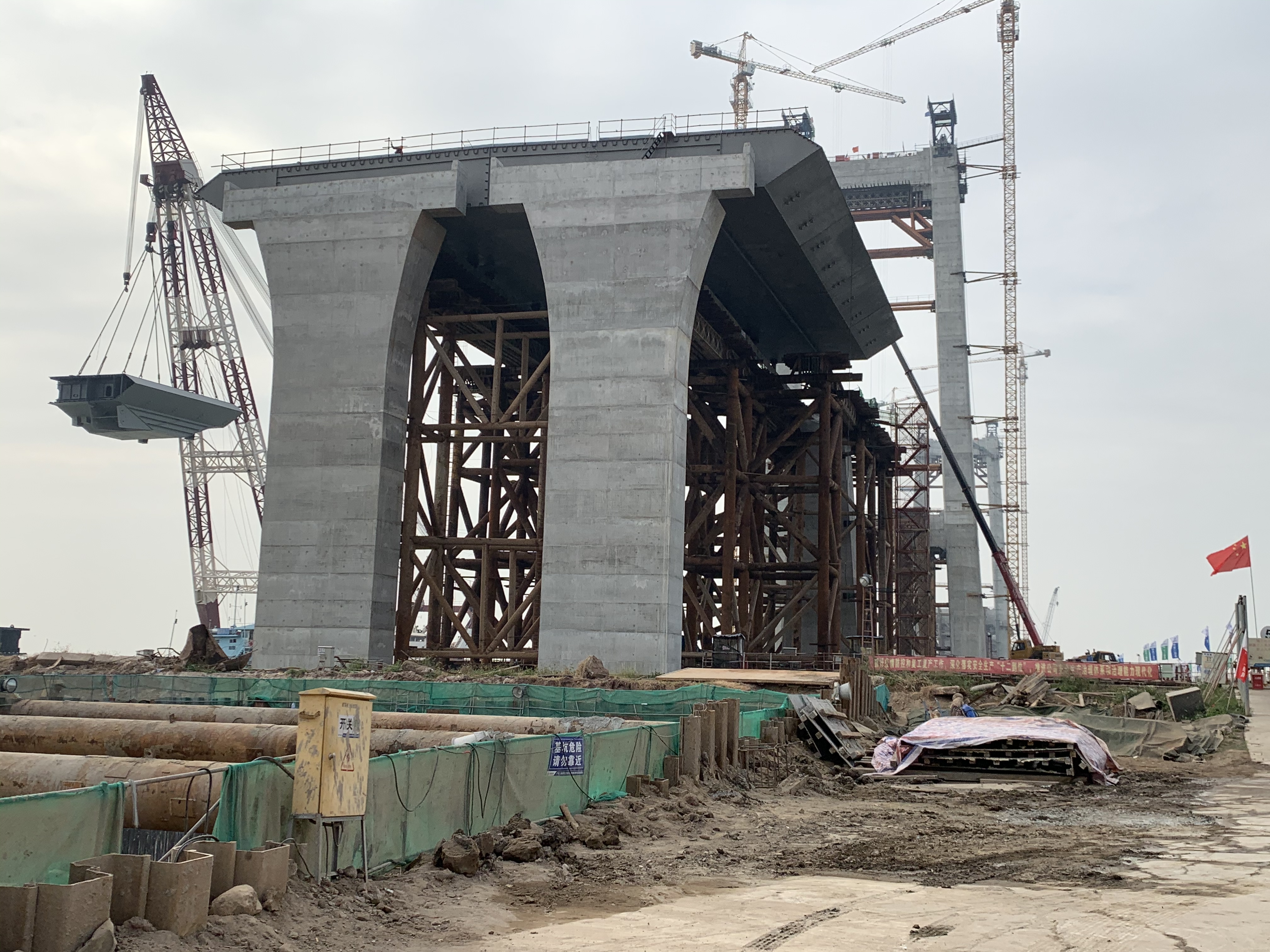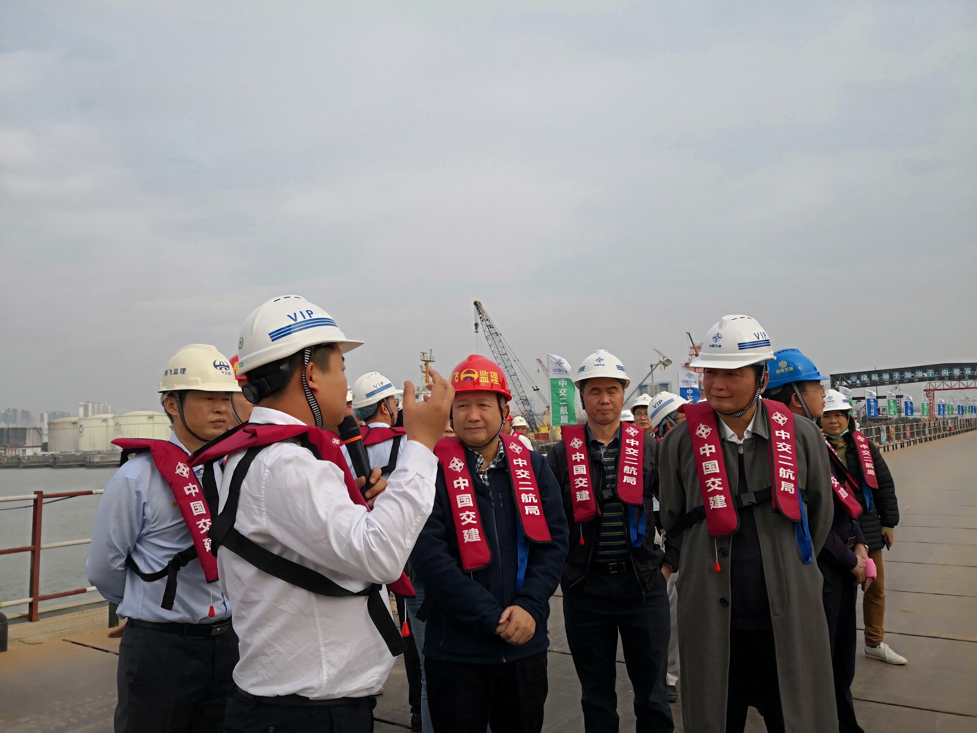 首先,大家前往東江南支流港灣大橋項(xiàng)目地進(jìn)行參觀學(xué)習(xí)。通過中交二航局項(xiàng)目經(jīng)理游川的詳細(xì)講解,我們了解到本項(xiàng)目主橋?yàn)橹骺?/span>320m的自錨式懸索橋,跨度居國(guó)內(nèi)前列,首次采用“臨時(shí)錨碇法”進(jìn)行主橋上部結(jié)構(gòu)“先纜后梁”施工,解決了自錨式懸索橋“先纜后梁”施工的諸多技術(shù)難題,為我國(guó)橋梁工程施工建設(shè)提供了重要理論依據(jù)和實(shí)用技術(shù)。作為項(xiàng)目監(jiān)理方,我們的監(jiān)理技術(shù)和手段隨著施工工藝的更新而不斷迭代升級(jí),為項(xiàng)目建設(shè)質(zhì)量保駕護(hù)航?!耙粯蝻w架南北,天塹變通途”,作為項(xiàng)目建設(shè)者,我們倍感驕傲!