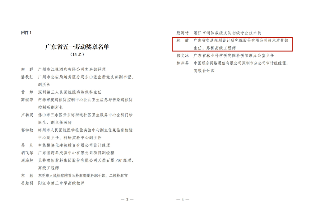 我公司技術(shù)質(zhì)量部主任林敏被廣東省總工會(huì)授予“廣東省五一勞動(dòng)獎(jiǎng)?wù)隆睒s譽(yù)稱號(hào)