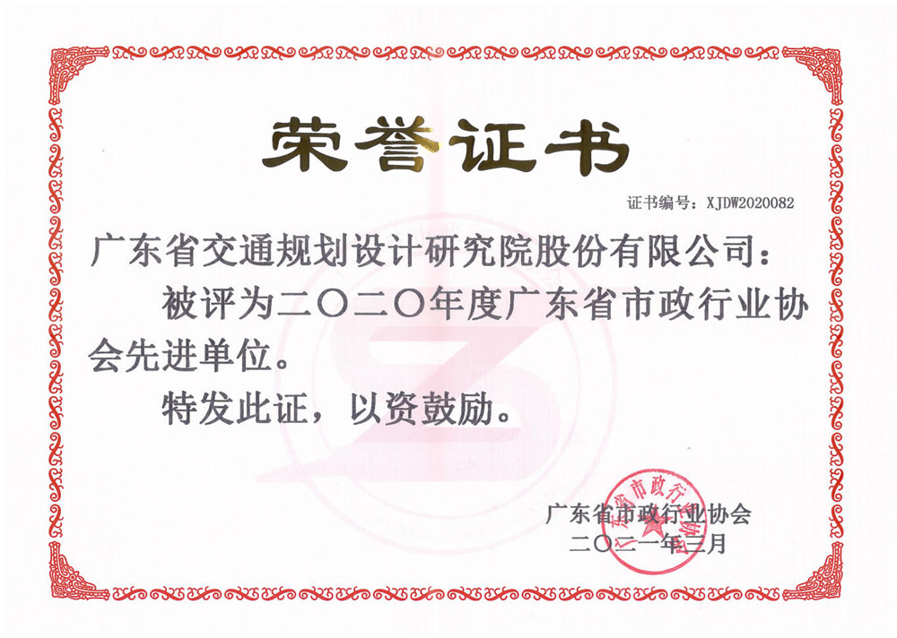 近日,我公司被廣東省市政行業(yè)協(xié)會(huì)評(píng)為“2020年度廣東省市政行業(yè)協(xié)會(huì)先進(jìn)單位”。