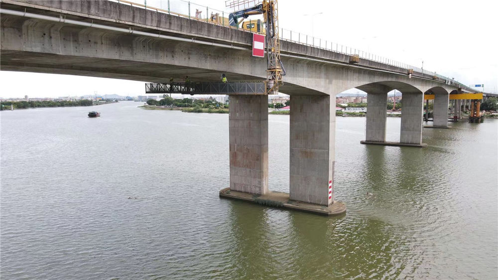 事故發(fā)生后,我集團與盛翔檢測公司領(lǐng)導(dǎo)高度重視、及時響應(yīng)。在集團副總工程師王景奇、第五設(shè)計院院長盧紹鴻、盛翔檢測公司總工程師何惟煌的帶領(lǐng)下,第五設(shè)計院和盛翔檢測公司迅速成立應(yīng)急搶險及修復(fù)項目組,開展應(yīng)急搶險及修復(fù)工作。項目組不怕艱難、連續(xù)作戰(zhàn),保時保質(zhì)保量地完成了安全評估、加固設(shè)計、應(yīng)急檢測、應(yīng)急監(jiān)測和實體修復(fù)后的交驗檢測等工作,在橋梁船撞應(yīng)急搶險工作積累了豐富的經(jīng)驗,并贏得了業(yè)主和建設(shè)各方的高度肯定。