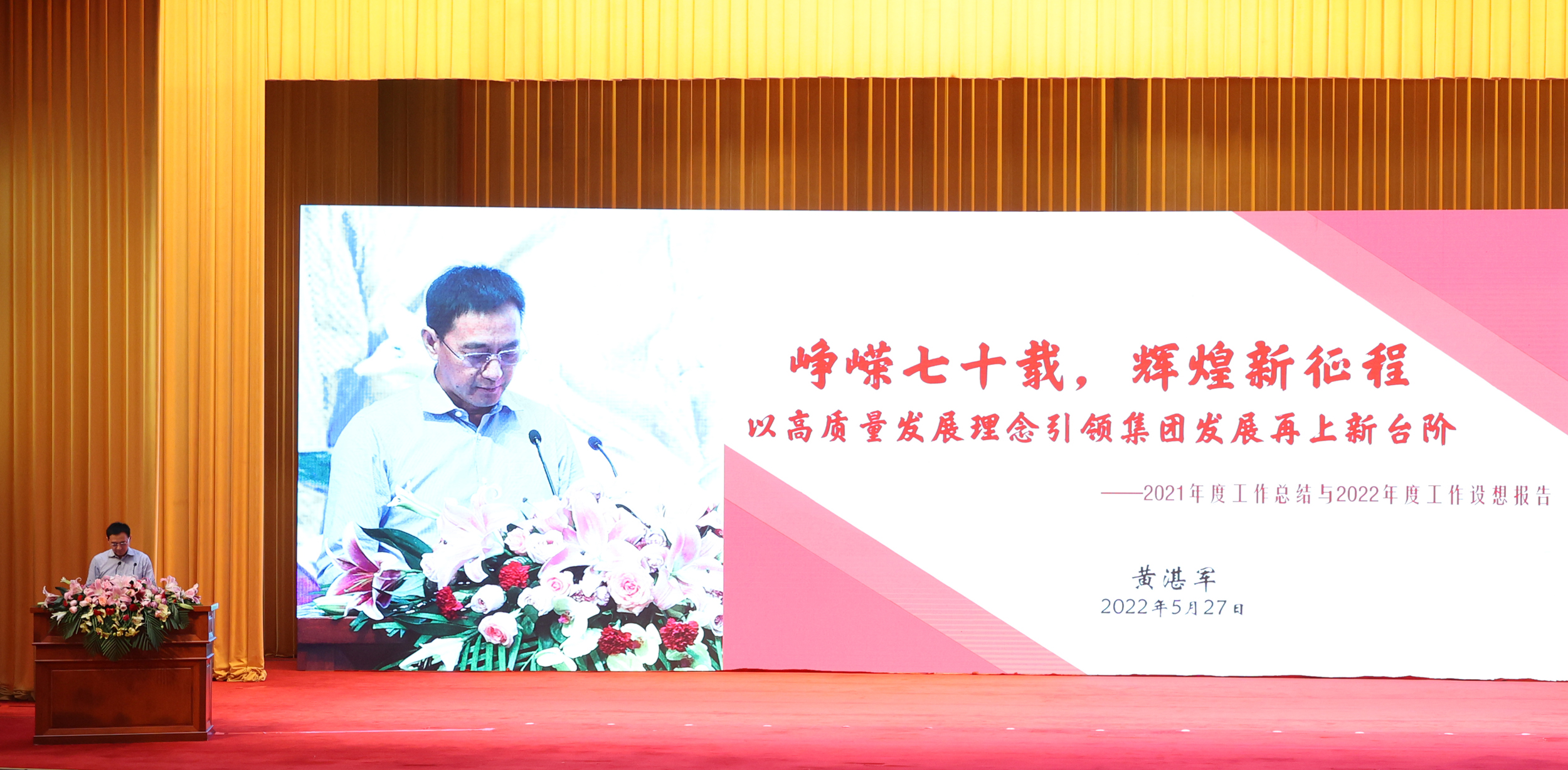 會上,集團總經(jīng)理黃湛軍作了題為《崢嶸七十載,輝煌新征程,以高質(zhì)量發(fā)展理念引領(lǐng)集團發(fā)展再上新臺階》的工作總結(jié)報告,對2021年各項工作進行總結(jié),并對2022年的工作做出整體部署。