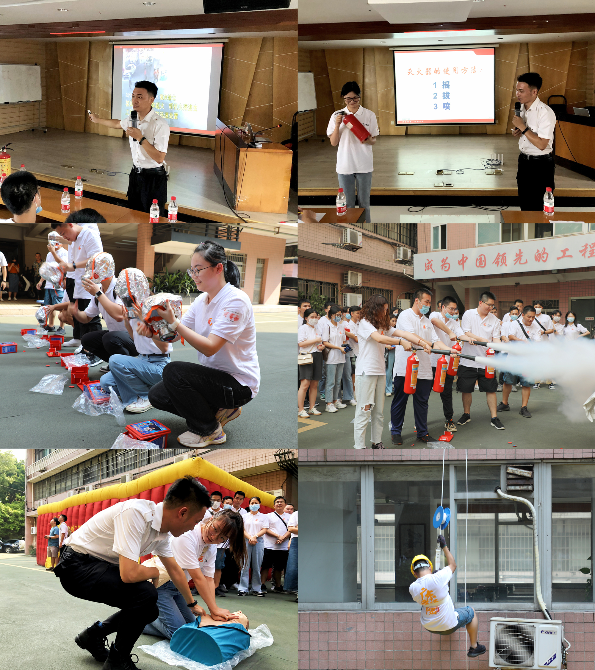 此外,為提高員工安全意識(shí),培養(yǎng)員工在突發(fā)情況下的避險(xiǎn)自救能力,集團(tuán)邀請(qǐng)了消防教育專業(yè)機(jī)構(gòu)舉辦消防知識(shí)講座,并在現(xiàn)場(chǎng)開展?jié)鉄煭h(huán)境逃生、高樓緩降逃生、防毒面具與滅火器使用演練以及心肺復(fù)蘇示范教學(xué),有效提高了員工的安全意識(shí)和面對(duì)突發(fā)險(xiǎn)情的處置能力。