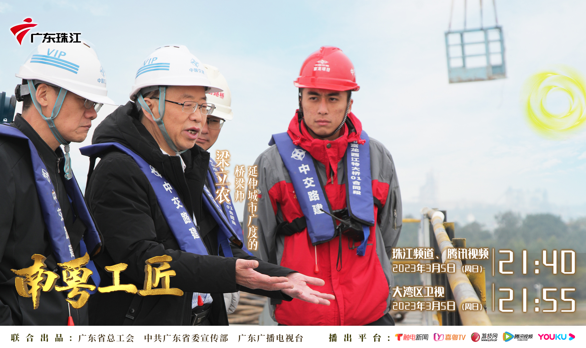 廣東省交通規(guī)劃設(shè)計(jì)研究院集團(tuán)股份有限公司首席專家、全國(guó)十大橋梁人物、廣東省工程勘察設(shè)計(jì)大師、中國(guó)公路學(xué)會(huì)優(yōu)秀科技工作者、全國(guó)公路優(yōu)秀勘察設(shè)計(jì)師、廣東省五一勞動(dòng)獎(jiǎng)?wù)?、“南粵工匠”梁立農(nóng)的個(gè)人專題紀(jì)錄片《南粵工匠——延伸城市廣度的橋梁師》于2023年3月6日在珠江頻道、大灣區(qū)衛(wèi)視以及騰訊視頻、優(yōu)酷、喜粵TV、廣州地鐵電視等新媒體平臺(tái)與觀眾見面。