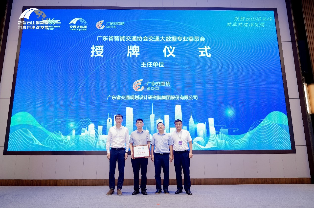 此外,為進(jìn)一步推動(dòng)交通大數(shù)據(jù)的共享共建,構(gòu)建交通大數(shù)據(jù)上下游產(chǎn)業(yè)鏈的交流溝通平臺,本次會議還舉行了廣東省智能交通協(xié)會交通大數(shù)據(jù)專業(yè)委員會的成立儀式。我公司擔(dān)任該專委會主任單位。廣東省智能交通協(xié)會會長謝振東為我公司進(jìn)行授牌。