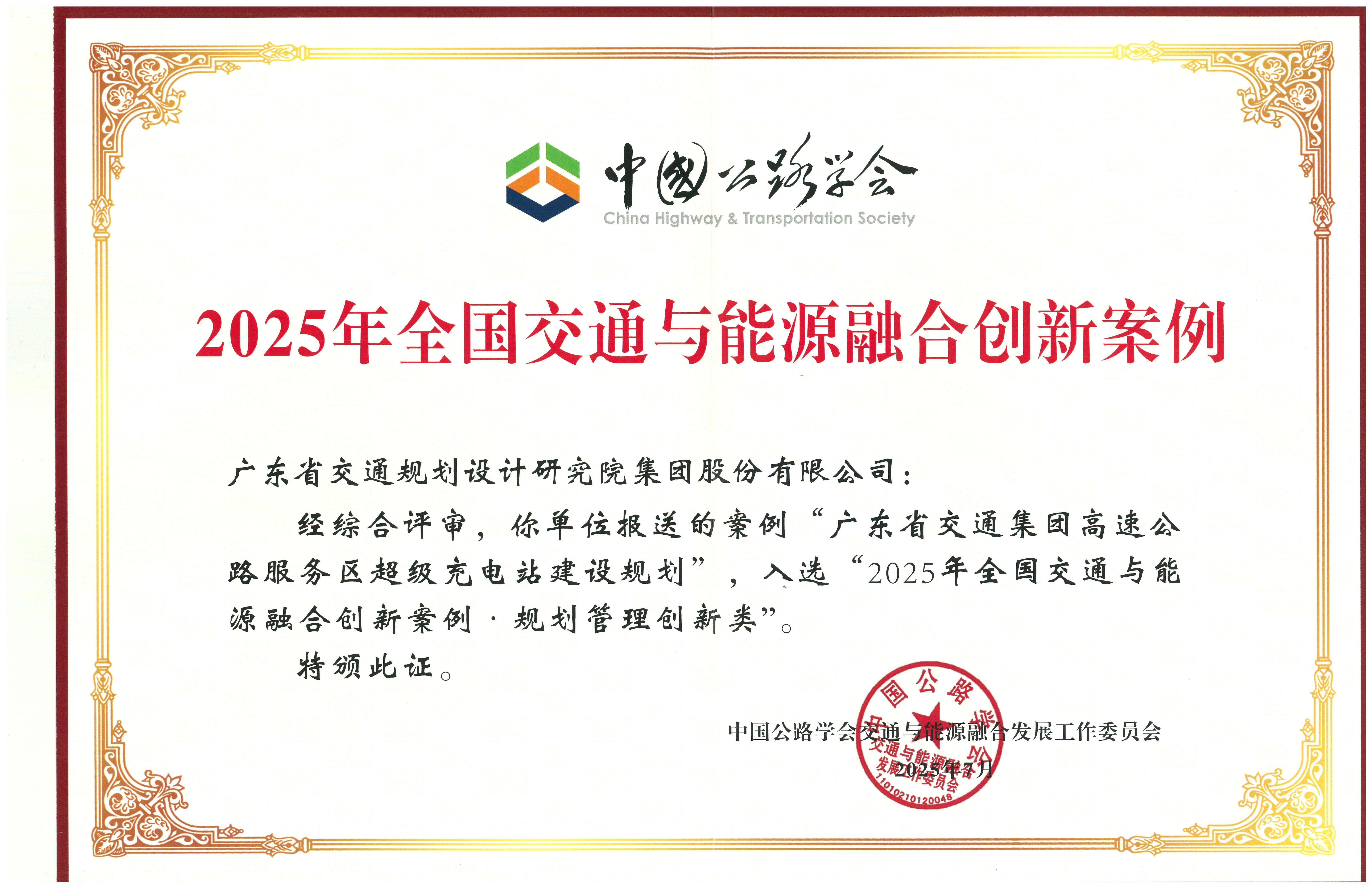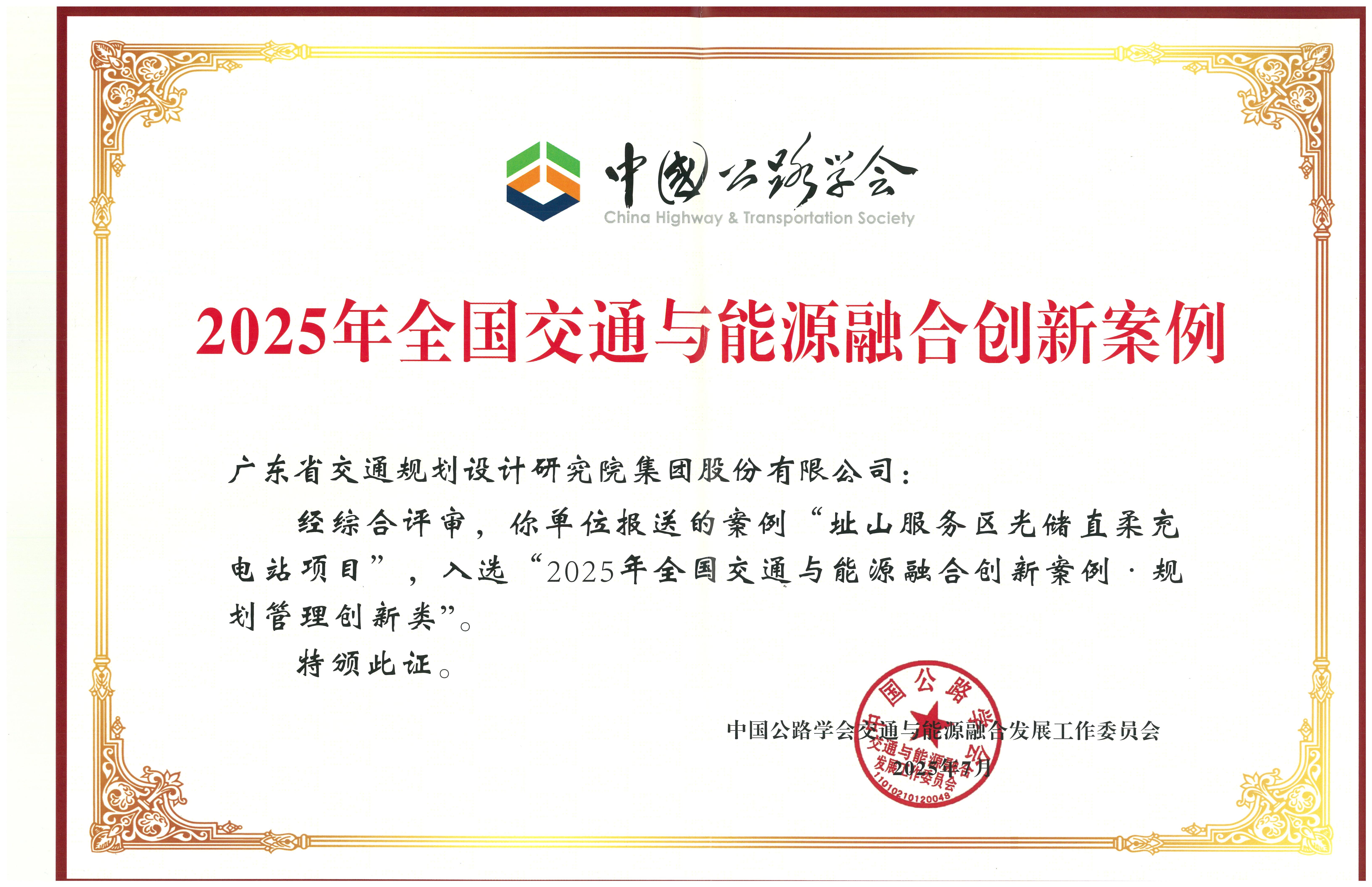 本屆年會(huì)以“綠色引擎 數(shù)智驅(qū)動(dòng)”為主題,共同擘畫(huà)交通與能源深度融合發(fā)展的新藍(lán)圖,集中展示我國(guó)交能融合領(lǐng)域最前沿的研究成果、實(shí)踐標(biāo)桿與權(quán)威洞見(jiàn)。會(huì)議期間,組委會(huì)正式發(fā)布了“2025年全國(guó)交通與能源融合創(chuàng)新案例集”,此次全國(guó)共有64項(xiàng)優(yōu)秀項(xiàng)目入選,其中公司《廣東省交通集團(tuán)高速公路服務(wù)區(qū)超級(jí)充電站建設(shè)規(guī)劃》《惠大高速元山服務(wù)區(qū)“光儲(chǔ)充”一體化低碳示范項(xiàng)目》《址山服務(wù)區(qū)光儲(chǔ)直柔充電站項(xiàng)目》三個(gè)項(xiàng)目入選。
