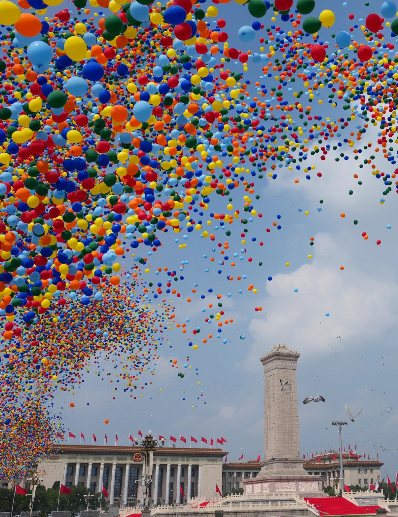天安門廣場上,長城烽火臺造型的年號臺巍然矗立,象征著中國人民在抗戰(zhàn)烽火中用血肉之軀筑起的鋼鐵長城。14只展翅欲飛的和平鴿雕塑,默默訴說著中華民族14年艱苦卓絕的抗戰(zhàn)歷程。豐饒金、城墻紅、橄欖綠三種主色調(diào)交相輝映,寓意著國家的根基在人民、血脈在人民、力量在人民。閱兵活動按照閱兵式、分列式兩個步驟進行。中共中央總書記、國家主席、中央軍委主席習(xí)近平發(fā)表重要講話并檢閱部隊,這一刻,歷史與當代在此交匯,光榮與夢想在此傳承。