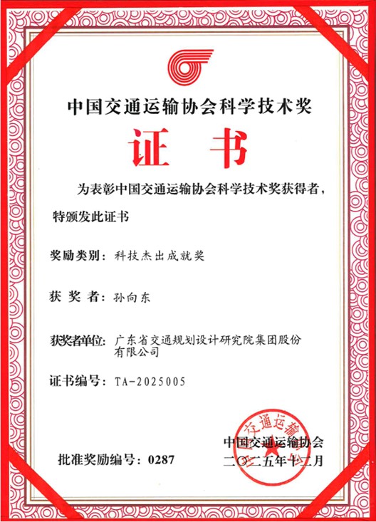 喜報(bào)!公司總工程師孫向東榮獲中國(guó)交通運(yùn)輸協(xié)會(huì)科技杰出成就獎(jiǎng)